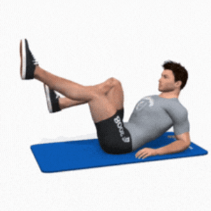 Allongé sur le dos relever les jambes à la verticale. Placer les bras vers le haut, puis décoller les épaules du sol pour rapprocher les mains des pieds. Répéter.